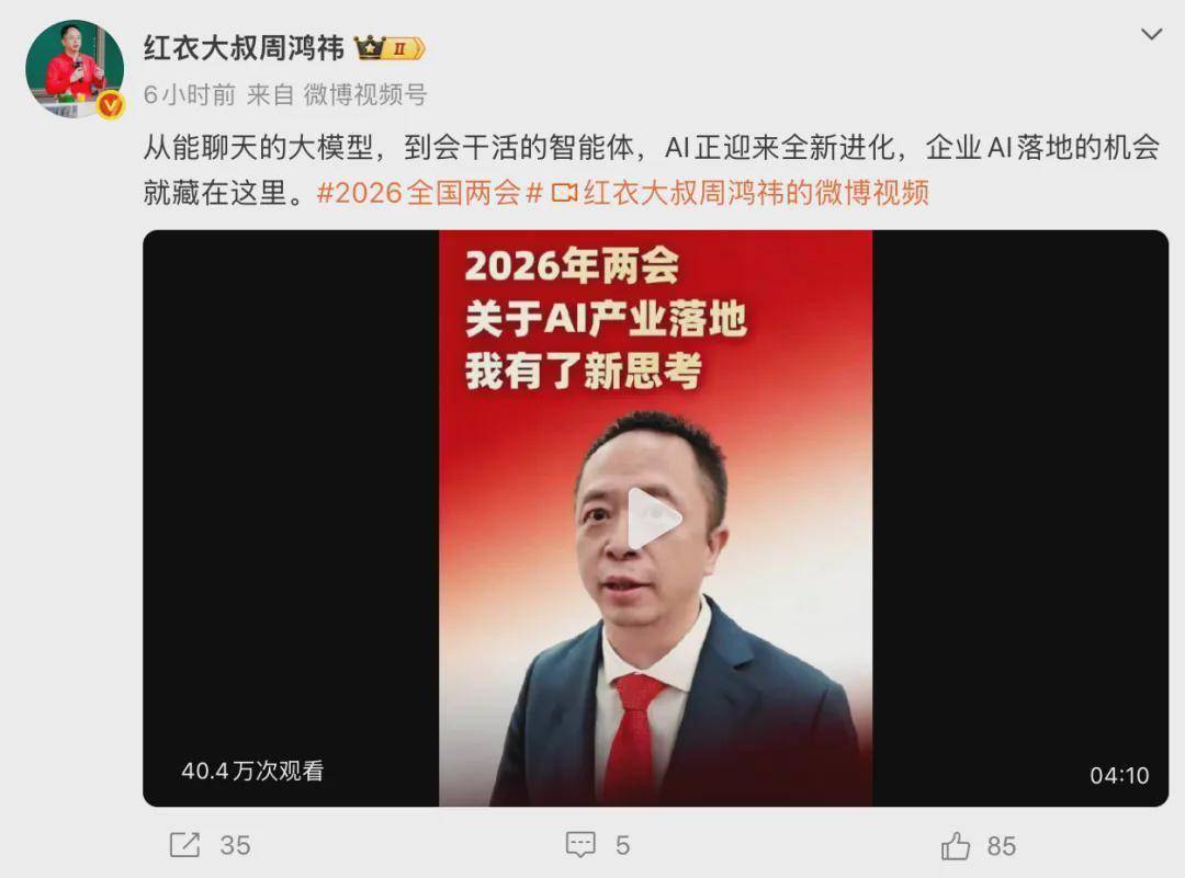 3月10日,@红衣大叔周鸿祎发博谈AI时代,他提到很多单位都装了自己的大模型,但是大模型实际是聊天机器人,但是真正干活还是有很大的差距。他表示,要想AI在企业内部,需要一个又懂AI又能打造智能体的人,又是业务专家,这样才能让智能体在企业落地。他同时提到,企业还有很多顾虑,人工智能本身对安全带来巨大的冲击,人工智能还有幻觉问题,不稳定的问题,内容胡说八道的问题。同时他提及最近很火的养“小龙虾”,它也存在一系列数据安全问题,有时候它产生幻觉了,可能把你的电脑C盘文件全删了。(杭州日报)